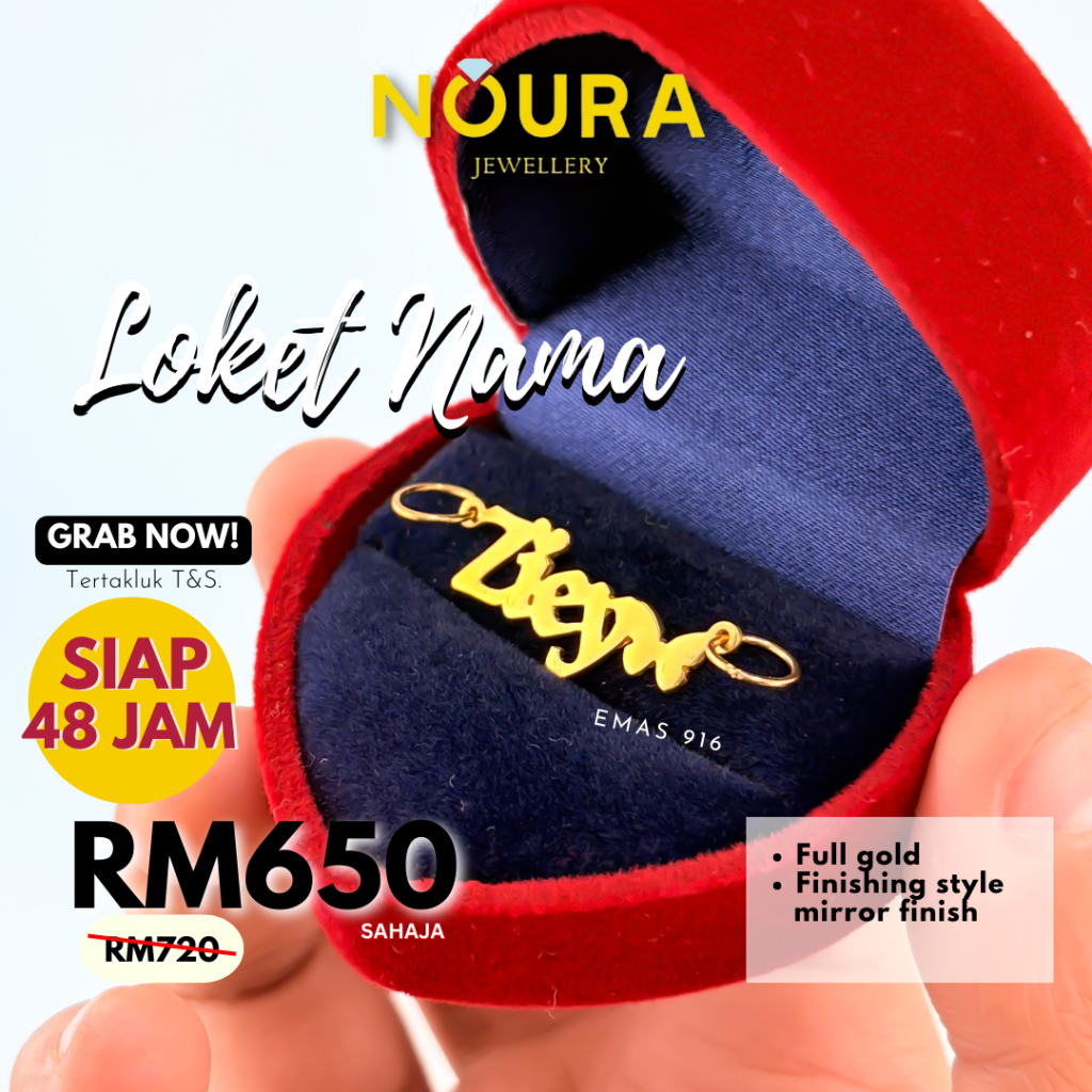 Jadi sebahagian daripada ratusan pelanggan yang telah mendapatkan loket emas 916 ukiran nama. Kualiti dijamin, siap dalam 48 jam.